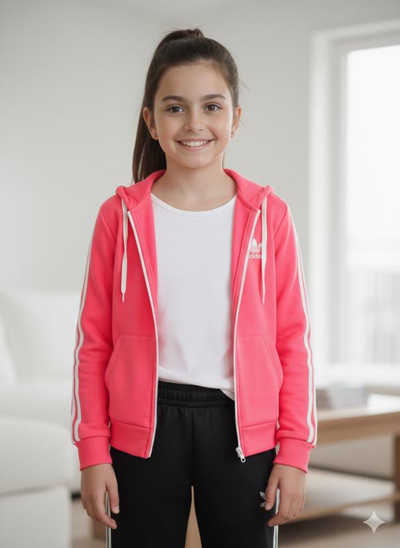 Спортивна кофта рожева Adidas На молнии, с карманами Из дефектов почти не заметны пары пятен, на рукаве и на переди где молния Яркий цвет, и белые логотипы Adidas Размер S