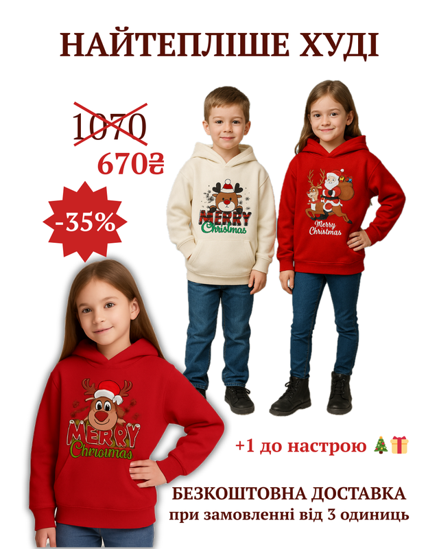 УПАЖАЕТЕ ТЕПЛИЙ НОВОРИЧНЫЙ ОДЕЖНЫЙ ДЛЯ СВОИХ ДИТОК? ❄️🎄 Это худи именно то, что Вам нужно, ведь она реально греет и создает новогоднее настроение 🎅🏼 ✔️ тринитка на флісі ✔️не теряет форму и цвет, не скатывается после стирки ✔️ отличная идея для подарок Цвета: молочно белый, красный ‼️Принты и цвета можно миксовать между собой!!️ Размеры по росту: 122-134, 140-150 БЕСПОЛЬЗОЧНАЯ ДОСТАВКА при заказе от 3 единиц 🎁 Для заказа пишите в личные сообщения 💬