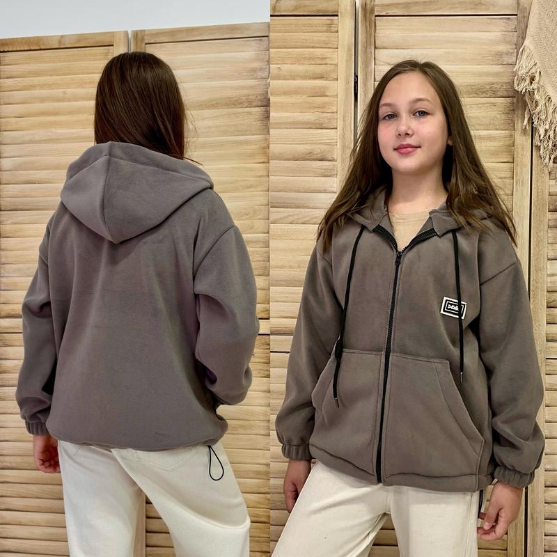 Худи-зепка на молнии с карманами и капюшоном внизу есть утяжка Ткань-флис-полар, тактильно очень мягенький и теплый Супер качество! Цена 1040 грн рост/длин.худи/пог/рукав от горловины похибка+-2см 146/56/49/57-1шт 152/57/52/59-1шт 158/59/54/62-1шт