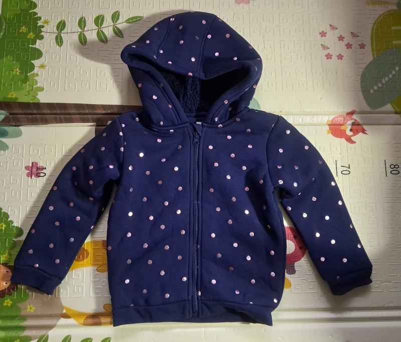 Худи с капюшоном, на молнии. Внутри мах по всей длине и рукавам. Стан нового. Очень теплое на зиму и мягкое на теле. Подходит на рост 104-110 см, в возрасте 4-5 лет. Замеры: Длина 43,5 Плечи 32 Рукав ОТ ПЛЕЧА 38 Полуобхват под рукавами 36