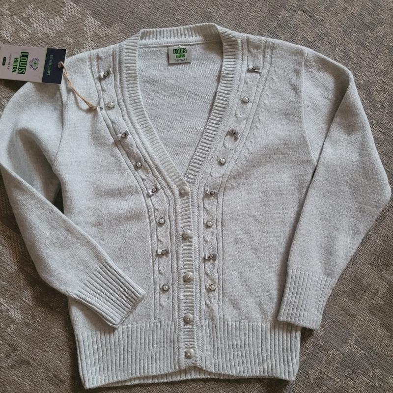Дуже гарний кардиган на дівчинку. Колір сірий меланж. Виробництво Турція. Склад шерсть 30%,70% акріл. Розмір 5-6 років,довжина виробу 43см,довжина рукава від плеча 39см. Розмір 7-8 років,довжина виробу 47см,довжина рукава від плеча 43см.