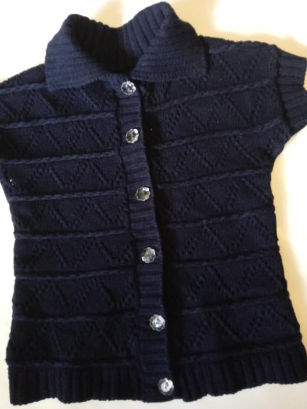 Жилет трикотажный,узор, синий цвет как на фото, длина50, пог38