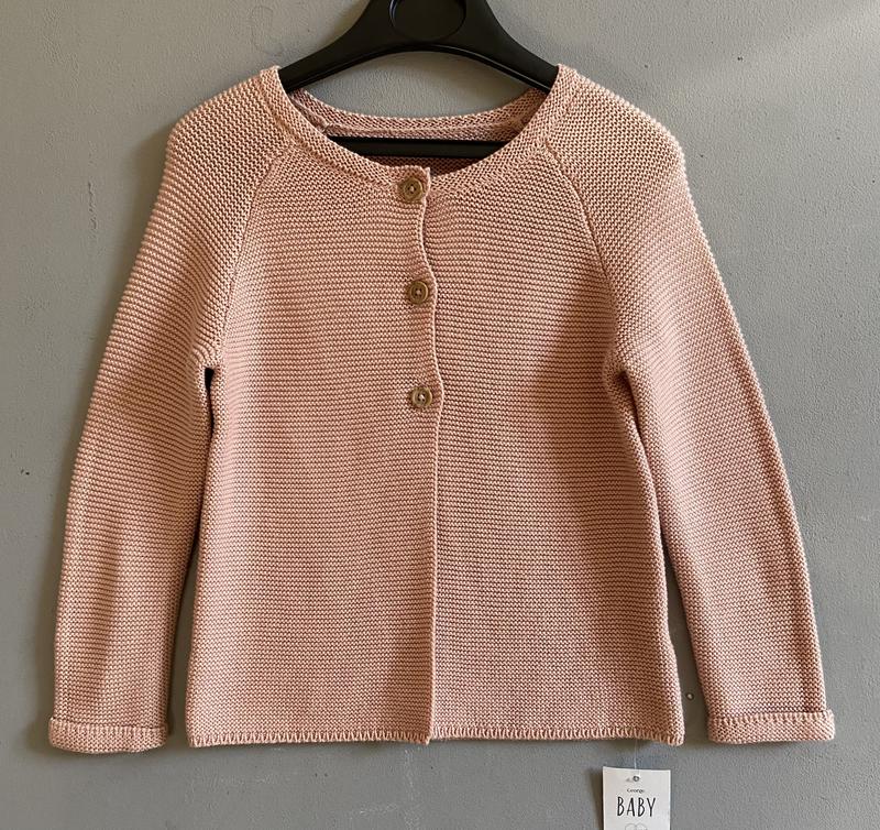 В`заимная кофта - кардиган для маленькой девочки на трех пуговицах. Размер 18-24м, рост 86-92см. Состав 100% хлопок.