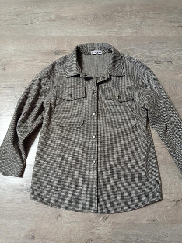 Невероятная рубашка для девочки. Очень красивый коричнево-бежевый цвет. Идеально смотрит на верх футболки, стильная, приятная к телу. Состояние новой.