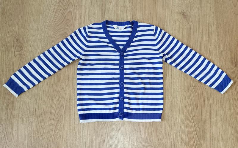 Кардиган H&M на девочку, оригинал с официального сайта (Америка), б/у. Размер 4-6 лет (по размерной сетке на рост 100-116 см). Состав: 100% хлопок, очень приятный трикотаж. Качество отличное. Состояние очень красивое. Цена - 100 грн. Замеры: длина - 44 см, ширина подмышками - 38 см, рукав от плеча - 43,5 см, рукав от горловины с плечом - 50 см.