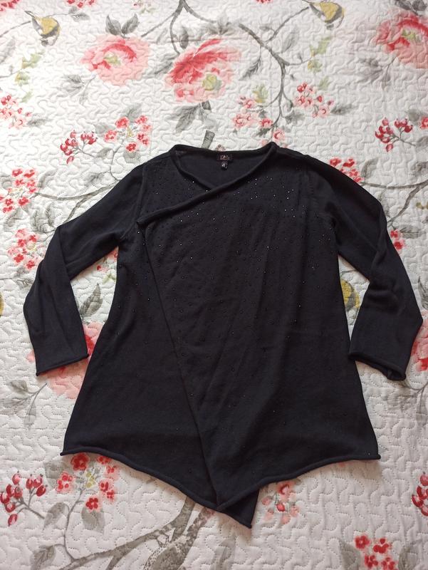 Хороший вариант для школы. В идеальном состоянии без диффектов и нюансов. Камешки красиво приклеены в черном цвете. Длина рукава от плеча -45см. Длина всего изделия по спине -56 см-- низ подвёрнут 53 см.