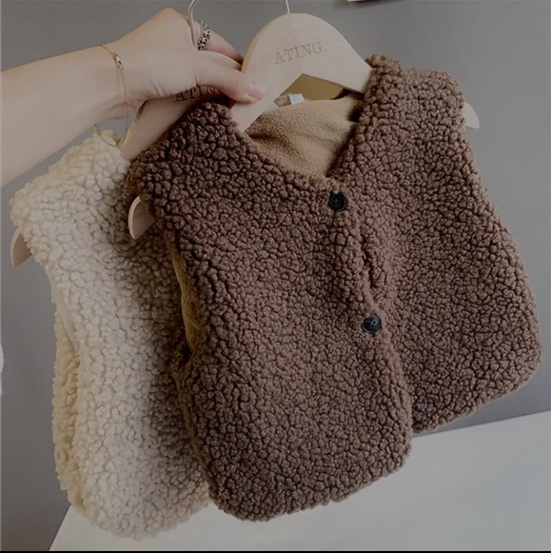 Очень стильная жилетка «Баранчик» в двух оттенках! Теплая, комфортная и удобная Можно надевать на платья, лонгсливы, свитерики! Все что на девочке также в наличии ( свитерик, штаны клеш )