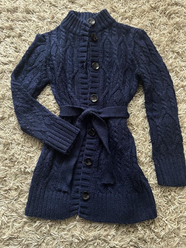 Теплый кардиган с поясом для девочки 10 лет, рост 140