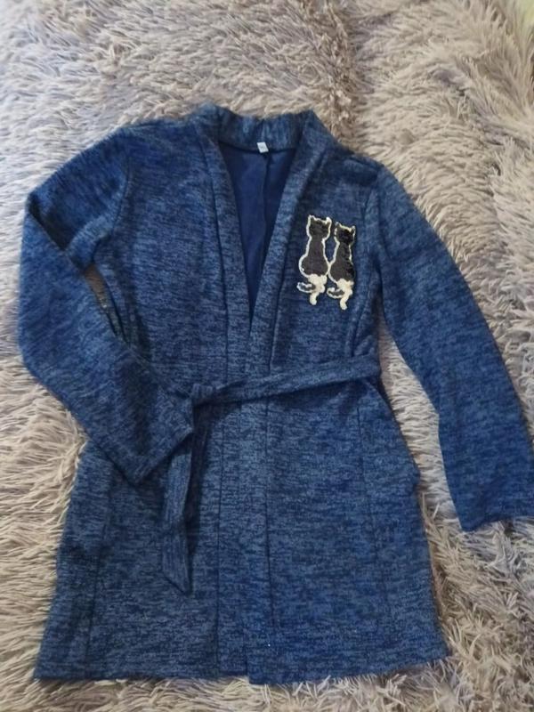 Кардиган на дівчинку Зручний, ремінець пришитий, має кармани Заміри: рукав - 50см плечі - 40см довж. - 65см