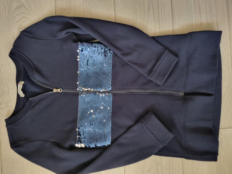Яркий капдиган, с легким начесом и пайетками. Пайетки меняют цвет (синие и серебряные)
