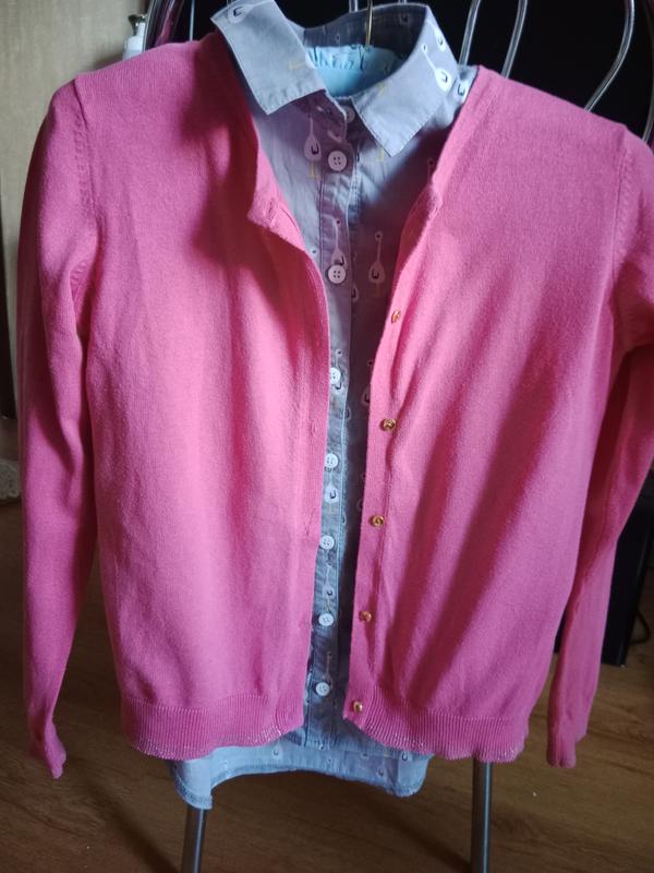 кофта кардиган испанского бренда lefties, цвет нежно коралловый, размер 134-140, на 9 лет, тонкий, ткань натуральная. стан очень красивый, пару раз надежен, есть след от ручки на фото есть.