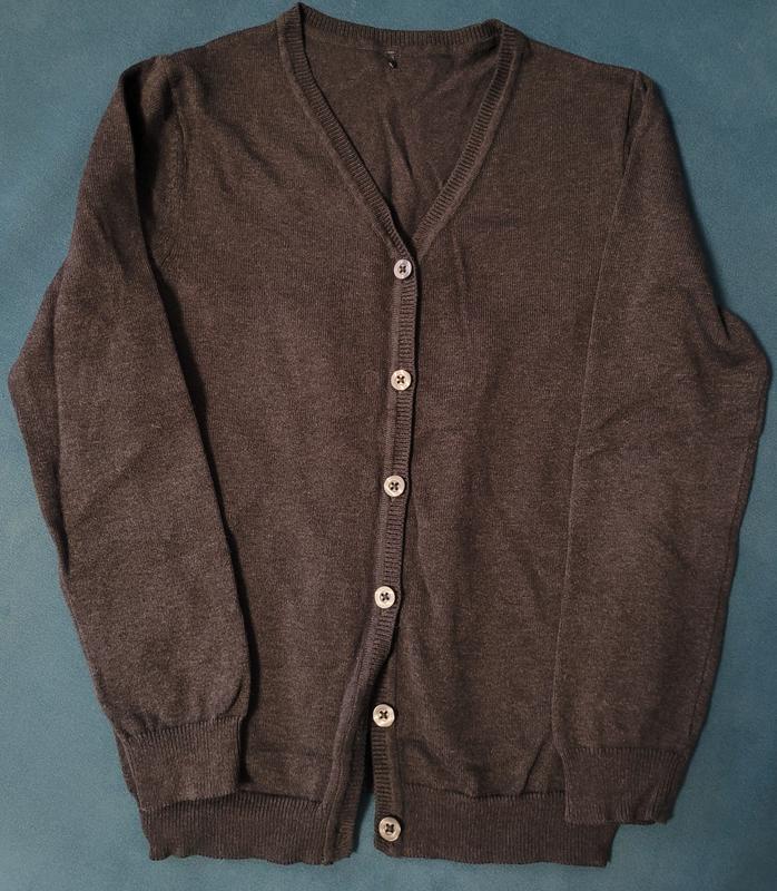В наличии кардиганы на пуговицах серого и синего цвета. На 8-9 лет 128-135 см серые, на 9-10 лет 135-140 см синий, на 7-8 лет 122-128 см красный. Состав коттон 90%, нейлон 10%. Новые.
