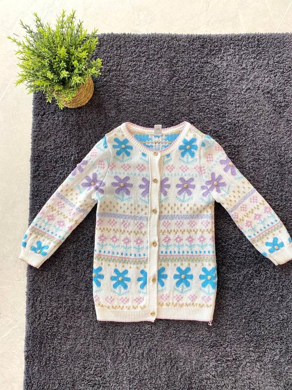 Кардиган TU 5-6 років У дуже хорошому стані. Але є маленька плямка на рукаві. На фото показала, не критично, не помітно. Заміри: Плечі - 28см. Рукава - 39,5см. ПОГ - 35см. Довжина - 51,5см.