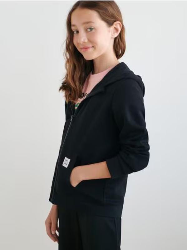Детская кофта кардиган на девочку. Кофта утепленная - на флисе с капюшоном и молнией спереди. По бокам карманы. H&M Моделька подойдет как девочке так и мальчику. р.122-128 - 6-8 лет: рукав от плеча 45, длина 49, ширина груди (ПОГ) 37