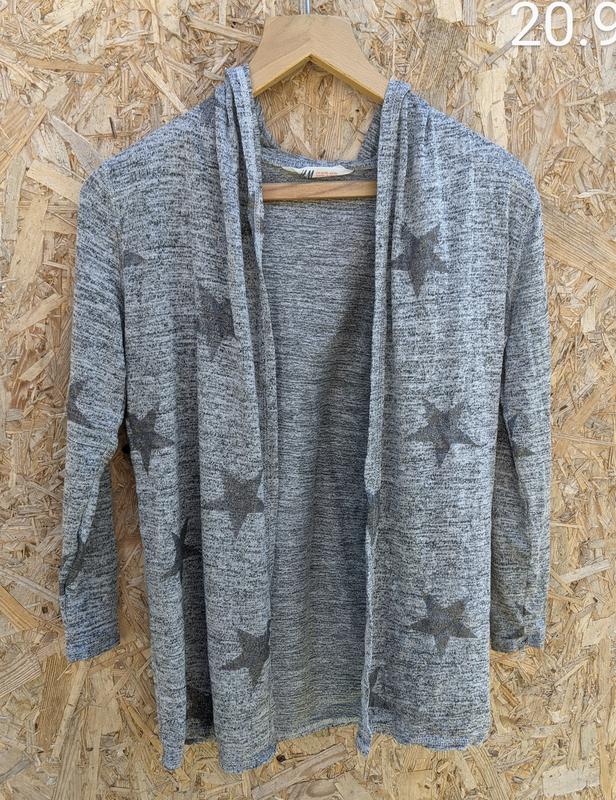 красивом состоянии де-не-де показало пару микрон потянутых нитей бренд h&m с этикеткой 8-10 но чисто визуально и на практике это 10 и 12 лет подойдет на несколько совмещенных размеров длина по спинке без учета горловины около 65 см рукав от плеча 48,5 см рукав от подмышки 39 ширина любая передняя часть 29 см каждая половинка которая запахивается.