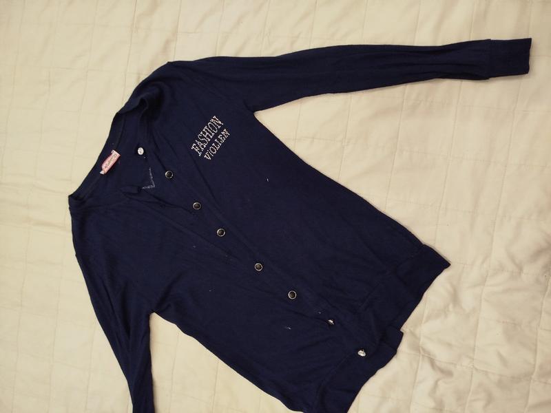 Изысканный трикотажный кардиган - кофта для девочки подростка темно- синего цвета. Украсит девичий гардероб и отлично подойдет на любое праздничное мероприятие в холодное время года. Заміри на фото. За дополнительной информацией обратитесь в приват.