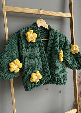 Яскравий весняний комплект кардиган та повязочка М’який та тепленький Ручна робота