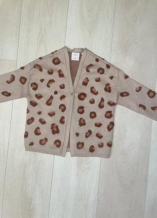 Теплый кардиган с анималистичным принтом Зара, 4- 5 лет, полномер, теплый и стильный, в носке пару раз