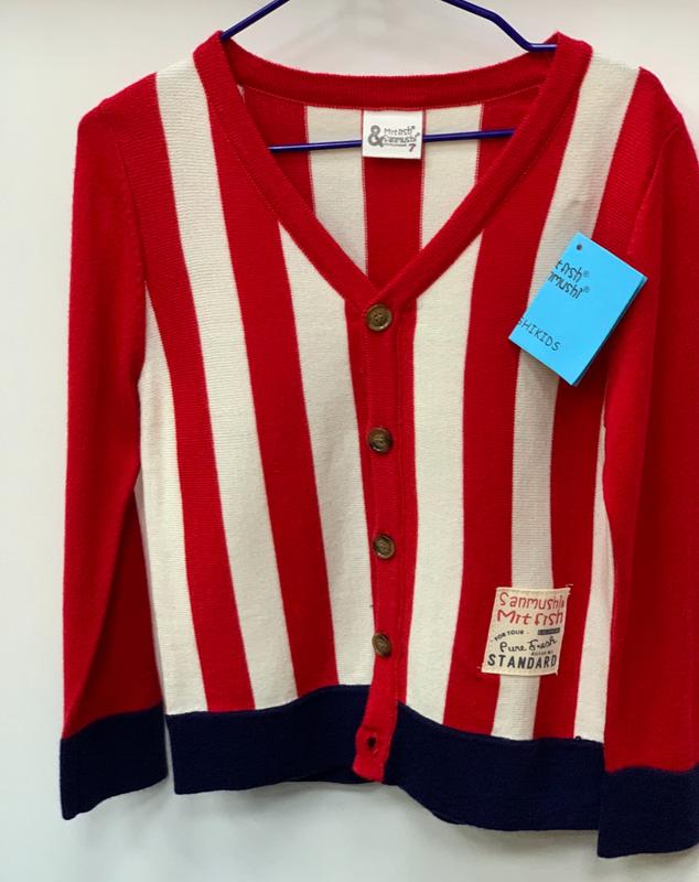 Кофтинка дитяча на ґудзиках у вертикальну смужку червоно-білого кольору, гарна якість, дуже приємна на дотик, яскрава красива, потрібна річ у гардеробі дитини.Розміри 7- довжина 39, ширина 29, довжина рукава 41; розміри -13 по запиту