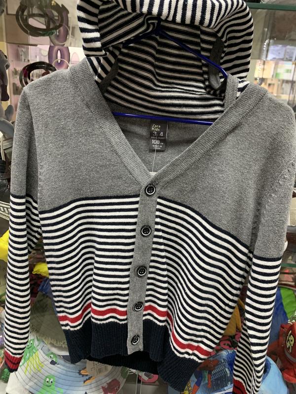 кофточка дитяча на гудзиках тоненький трикотаж є капюшончик фірма Zara наявності два розміри на 3-4 роки та 7-8 років. Розмір 3-4: довжина 33 см ширина 32см, довжина рукава 39.Параметри 7-8 роз за запитом дитина буде красиво виглядати і водночас у комфортній та затишній речі, яку не захочеться знімати