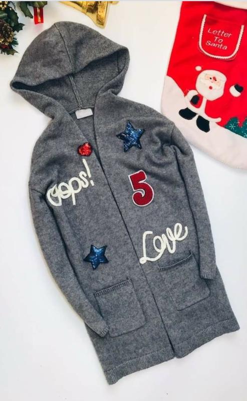 машинная вязка, теплый с капишоном, есть карманы, невероятно теплая вещь в школу или на прогулку