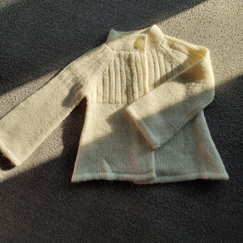 Очень теплый, состояние идеальное, цвет молочный с люрексом, на возраст 3 -3,5 рюмки