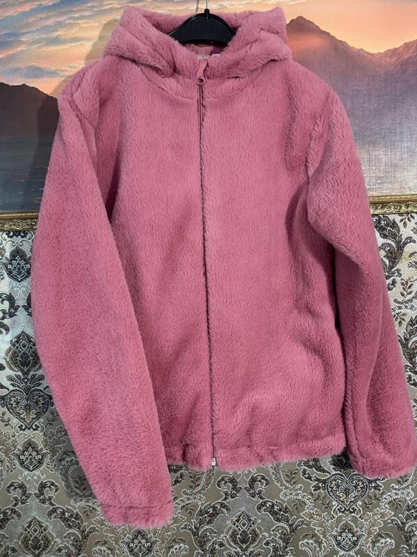 Легкая куртка-кофта из искусственного меха с капюшоном.Есть защита подбородка, полноценная подкладка по всей куртке, 2 кармана боковых. Состояние новой. Длина от плеча-58,5см Ширина под рукавами-46 см Рукав-59 см Плечи-40 см