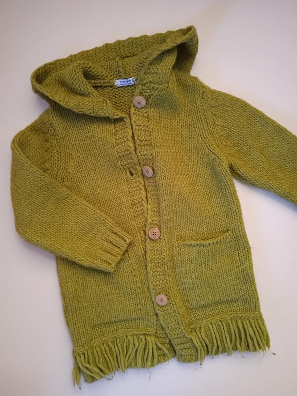 Красивый, теплый с капюшоном и поясом кардиган - mayoral.На возраст 4 года и рост 104 см.