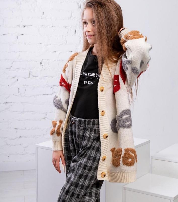 Шикарний теплий Кардиган для дівчинки😍 Відсутній лише один ґудзик Довж56,рукав від горловини 51-52,пог40