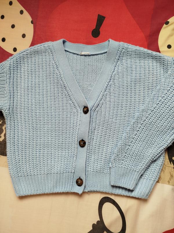 Кардиган для дівчинки, в ідеальному стані. Тепленький і зручний, приємний до тіла, підійде і до джинсів, і до класичних штанів чи спідниці. Довжина 43 см, ширина під руками 46 см, довжина рукава 44 см, плечовий шов спущений, тобто рукав починається нижче плеча, на фото видно. Колір такий як на фото 2.