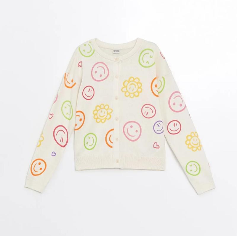 LC WAIKIKI Трикотажный кардиган для девочек с круглым вырезом, узорчатый, с длинным рукавом.