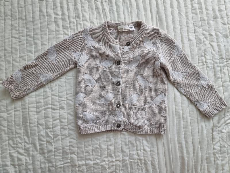 Красивый, вязаный кардиган для девочки. у производителя размер 86/92, но болеемерит. Хороший и до 104. Заміри на фото. Без дефектов. состояние идеальное. на пуговицах.