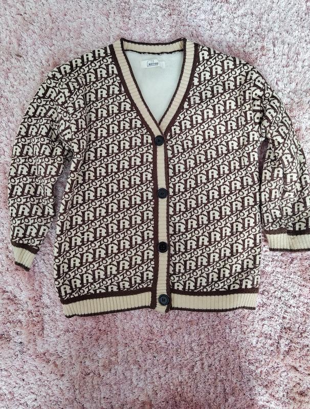 Предлагаю к продаже очень стильный кардиган с уникальным узором-монограммой. Эта кофта выполнена в приятной бежево-коричневой гамме, которая легко сочетается с любой базовой одеждой — от джинсов до классических штанов. Фасон: свободный крой, V-образный вырез, застежка на пуговицы, контрастная отделка по краю и манжетам. Тепло: Мягкая, приятная к телу пряжа, идеально подойдет на осень/зиму/весну. Состояние: идеальный 📌 Замеры Длина по спинке: 51см Ширина в груди: 41 см Длина рукава от плеча: 50 см