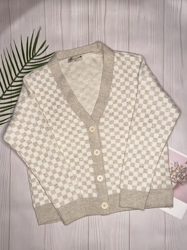 Кардиган в дуже гарному стані як новий🤍 Заміри: ПОГ 49 см Довжина 58 см Довжина рукава від плеча 44 см Обміну та повернення немає.