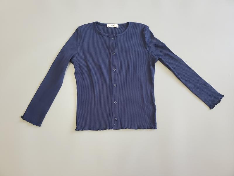 🔥 ВАЖЛИВО! 📦 Уточняйте наличие товара перед заказом 🚫 Через Rozetka тимчасово не відправляю 💳 Безопасное оформление с оплатой на карточку продавца Практичный кардиган для девочки. Застежка - планка из пуговиц спереди. Круглый вырез горловины. Цвет - Темно-синий Стильная и модная моделька! Бирка-отсутствие Размер 128 (122) Цена-420 грн