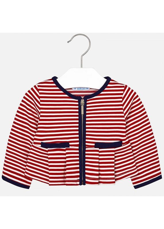 95% полиэстер5% эластан кардиган для девочки Mayoral в красную полоску и с синей окантовкой