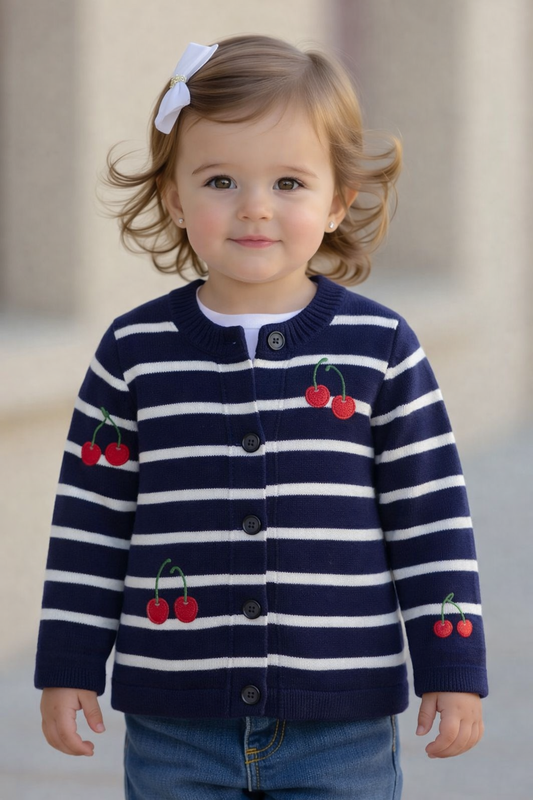 🍒 Стильная кофта/кардиган для девочки Очень красивая темно-синяя кофта в белую полоску с милыми вышитыми вишняками 🍒 Застегивается на пуговицы, приятная к телу, мягкая и комфортная. ✨ Хорошо сочетается с джинсами, футболками, платьем... ✨ Актуальный принт – выглядит стильно и аккуратно 📏 Размер 2 - 3 года 📌 Состояние отличное (детой не ношене 👌) 📐 При необходимости дам замеры Отправка быстрая 🚀 Смотрите другие Мои объявления — много стильных вещей для девочки 💕