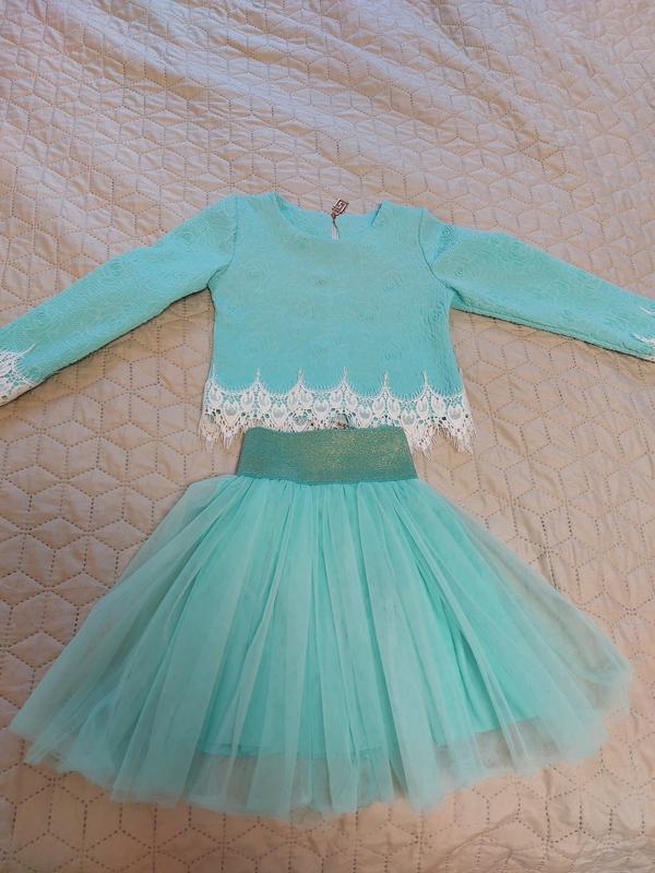 Костюмчик нарядний для дівчинки 104 см. Кофта ззаду на замок, спідничка фатінова. В ідеальному стані.