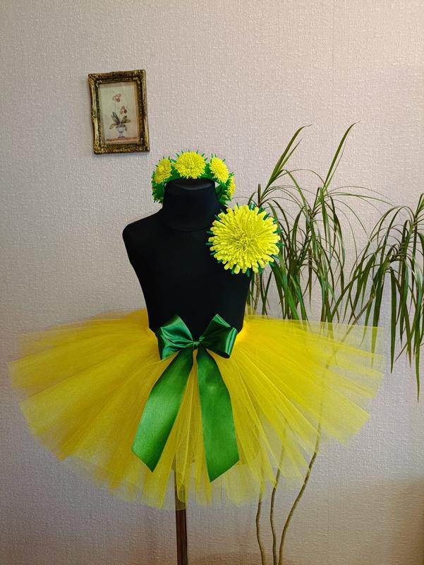 Костюм одуванчика Юбка цветок на заколе можно цеплять куда угодно. Для девочек 4-7 лет в садик на праздник весны.