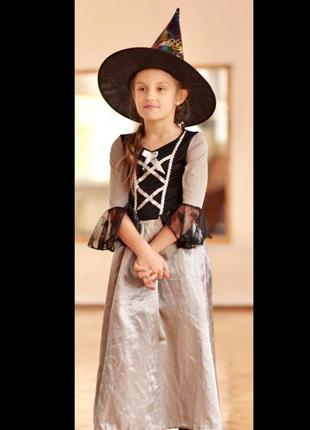 Костюм ведьмы на Halloween Для девочки 7-10 рочков Смотрится очень стильно) Есть нюанс (видно на последнем фото) Дирка на подюбнике, прожгли горячим утюгом, но при носке не виден