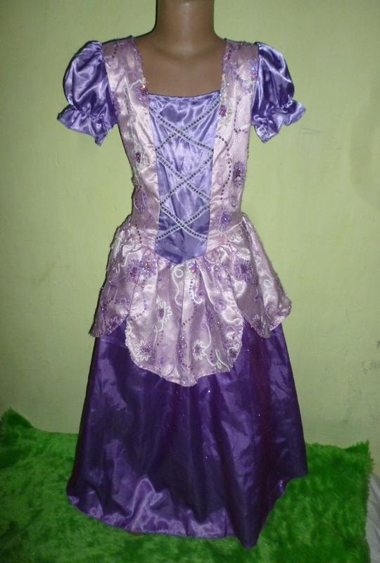 платье Рапунцель на 7 - 9 лет, б\в в отличном состоянии, с нюансов на спине есть пара зацепок, не заметных и юбка был порван,зараз зашит, но этого вообще с лицевой стороны не видно никакая длина 98см, повод плеча к поясу 36см, ширина подмышками 36см,пояс 33см является резинка,рукав 16см + плечо 6см. плечи 30см
