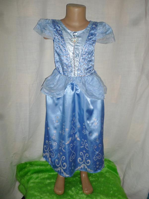 платье Золушки на 5-6 лет,в оченьхорошем состоянии.Из нюансов по низу платья ф.3 есть стрепы,ф.2 спереди небольшая зацепка на груди,ф.5 сбоку сзади есть пар пятнышек.так же сзади есть пару зацепок.прми носке не особо заметны длина 85см,от плеча до пояса 30см,ширина 30см,пояс 26см есть резинка,рукав 12см + плечо 4см.плечи 24см
