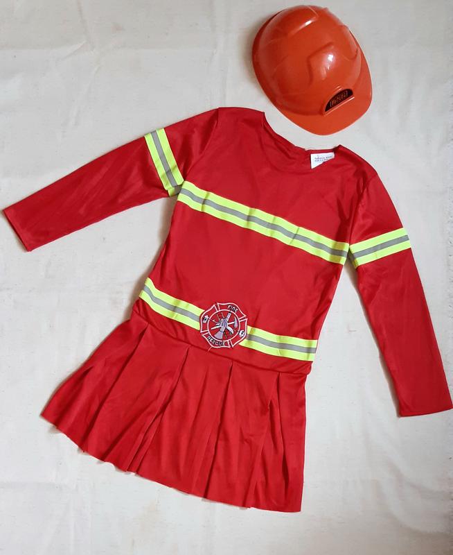 Пожарный платье и каска карнавальный костюм на девочку 5-6 лет ЗАМЕРЫ длина до юбки/низа 42/65см, ПОГ 35см, ПОБ 34см, рукав 42,5см, плечи 30,5см 200