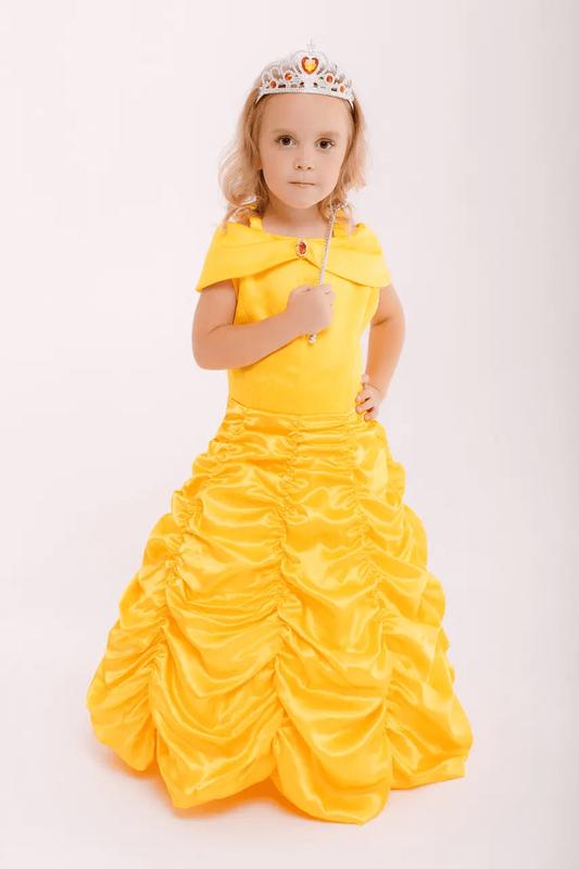 Платье Белль из мультфильма "Красавица и Чудовище" 0281 Мультфильм «Красавица и чудовище» от студии Уолта Диснея – это невероятно душевная, трогательная история любви. Ее главная героиня Белль – очаровательная принцесса с большим сердцем, пример для подражания девчонок всех возрастов. Примерять платье Белль желтого цвета – мечта детей, поэтому покупка такого костюма на День рождение, Новый год, Хэллоуин, утренник в садике или костюмированную вечеринку всегда прекрасная идея. Наряд привлечет внимание всех окружающих, сделает вашу маленькую принцессу центром внимания, главной особой на вечеринке. Красавица Белль, словно солнышко, все, к чему она дотрагивается, делается светлее, добрее и лучше. Возможно, секрет ее в великолепном желтом платье? Пусть и ваша малышка примеряет на себя этот наряд, чтобы ощутить магию, силу красоты принцессы. Платье Белль «Красавица и чудовище» имеет длину до пола, характерный яркий желтый цвет, лаконичный, но при этом изысканный декор в верхней части. Преимущества желтого платья Белль: - пошит наряд из переливающегося атласа, но имеет хлопковую подкладку, что приятная к телу; - эффектный внешний вид обеспечивает дизайн платья, его длина; - небольшие рукавчики, декоративная брошь на груди делают верх наряда милым, нежным. Дополнить наряд вы можете короной и волшебной палочкой, прекрасными нежными туфельками и желтыми перчатками. Пусть ваша маленькая принцесса будет центром внимания не только вашего мира, но и окружающих. Мультфильм «Красавица и чудовище», платье желтое из которого известно всем девочкам в мире, имеет волшебный эффект. Все образы из мультика желанны, любимы, узнаваемы, а его история несет в себе те чувства, которые нужны нам каждый день: это любовь, добро, преданность, взаимопонимание. Воспитывайте в детях чувство прекрасного! Размерная сетка: - 100 см (2-3 года) – длина 65 см, обхват груди 56 см, на рост 90-100 см; - 110 см (4 года) – длина 69 см, обхват груди 58 см, на рост 100-110 см; - 120 см (5 лет) – длина 75 см, обхват груди 60 см, на рост 110-120 см; - 130 см (6 лет) – длина 80 см, обхват груди 64см, на рост 120-130 см; - 140 см (7-8 лет) – длина 88 см, обхват груди 68 см, на рост 130-140 см; - 150 см (9 лет) – длина 92 см, обхват груди 72 см, на рост 140-145 см. Указывайте необходимый размер в комментарии к заказу.