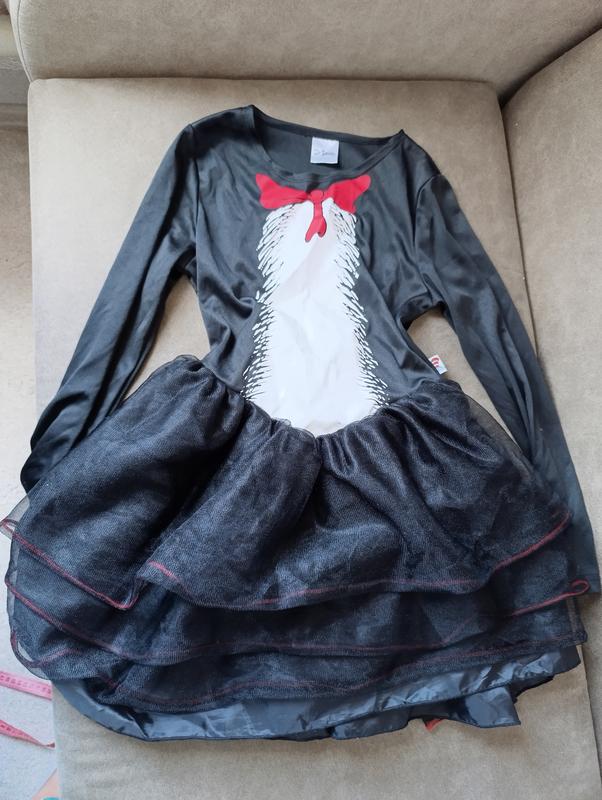 Платье карнавальное кошечки. Размер подростковый, смотрите замер длины, ткань верхней части тянется. Хвостик потерялся, на фото из зада видно место для липучки, но он чеплился не надёжно, поэтому и потеряли. Костюм карнавальный на Halloween party, костюм кошки, Хэллоуин, Хэллоуин, платье на праздник.