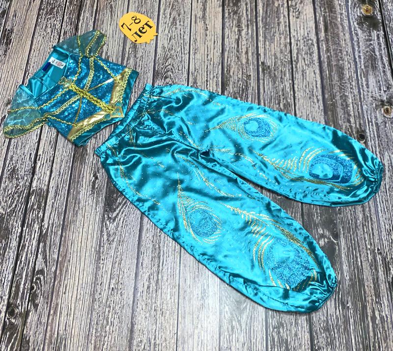 Новогодний костюм Жасмин для девочки 7-8 лет, 122-128 см Б/у, состояние идеальное Замеры топа: Длина от плеча донизу-30 см Ширина между подмышками-32 см Замеры брюк: Длина-74,5 см Длина шагового шва-50,5 см Длина посадки-28 см Полуобхват в поясе-86 см -тянется