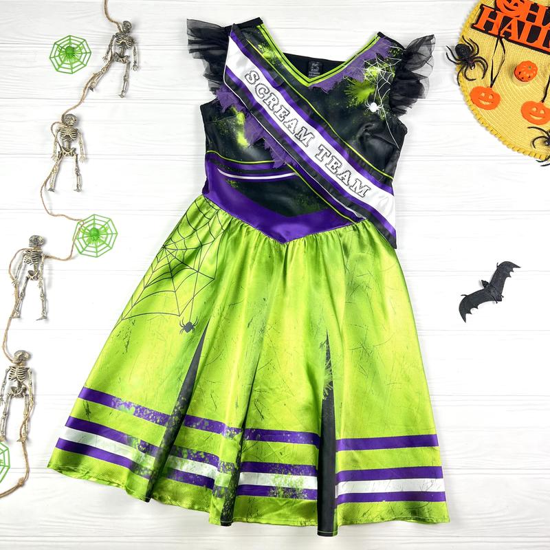 Платье на Хэллоуин от F&F на 11-12 лет, 146-152 см. ▪️общее состояние идеально ▪️впереди у ленты есть маленькая зацепка, в жизни не бросается в глаза 👀, смотрите фото 5(беля липучки) ▪️лента с мировым устройством, при необходимости можно снять, крепится на липучках ▪️ткань 100 полиэстер Плечи 35 Пог 38.5 Талия 31.5, тянется Длина топа 39 Общая длина 89