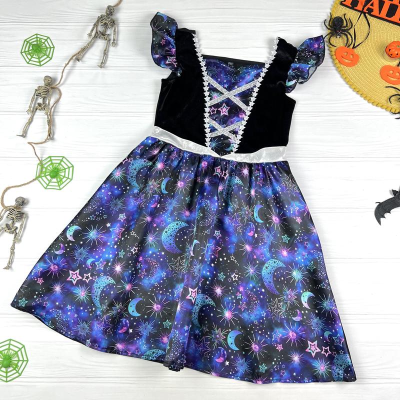 Сукня на Хелловін від F&F на 7-8 років, 122-128 см. ▪️загальний стан ідеальний, але є пару незначних недоліків на тканині дивіться останні 2 фото ▪️тканина 100 поліестер Плечі 28.5 Пог 32 Талія 30, тягнеться Довжина топа 25 Загальна довжина 72