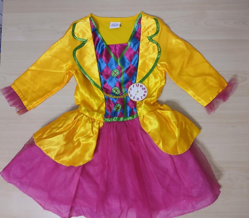 Карнавальное платье Алиса в стране чудес на 5-6 лет яркое платье атлас/фатин/трикотаж длина 60 пог 28 плечи 25,5, длина рукава 30 в целом состояние платья хорош, только на рукавах есть затяжки, последние фото