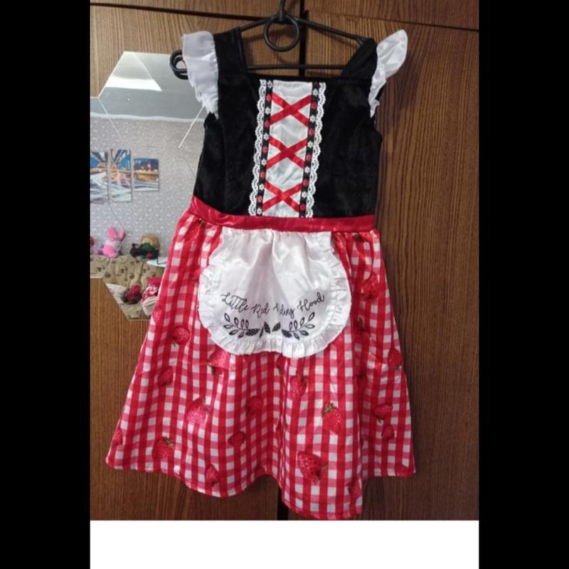 Красивое платье Красной шапочки. Подойдёт для любой тематической вечеринки. Состав:100% полиэстер. Состояние идеальное. На 5-6 лет.Рост 116 см. Замеры:ПОГ-29 см;ПОТ-26 см(резинка); длина-65 см. Фото на ребенке нет. Пересылка.